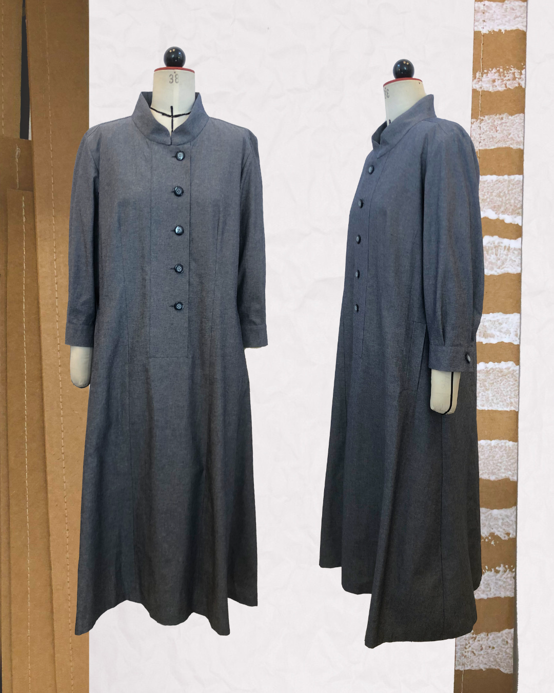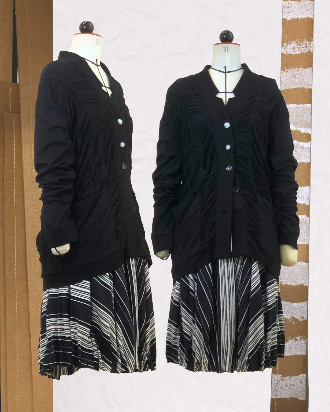 Hochwertige, nachhaltige Materialien wie Bio-Baumwolle, Seide, Schurwolle, Modal, Cupro und Tencel laden dazu ein, sie zu berühren. Tiefe Orange-, Rot- und Blautöne werden von Grau und Schwarz gebrochen und abgerundet. Ungewöhnliche Stoffbearbeitungen verleihen der Kollektion einen hochwertigen Touch.